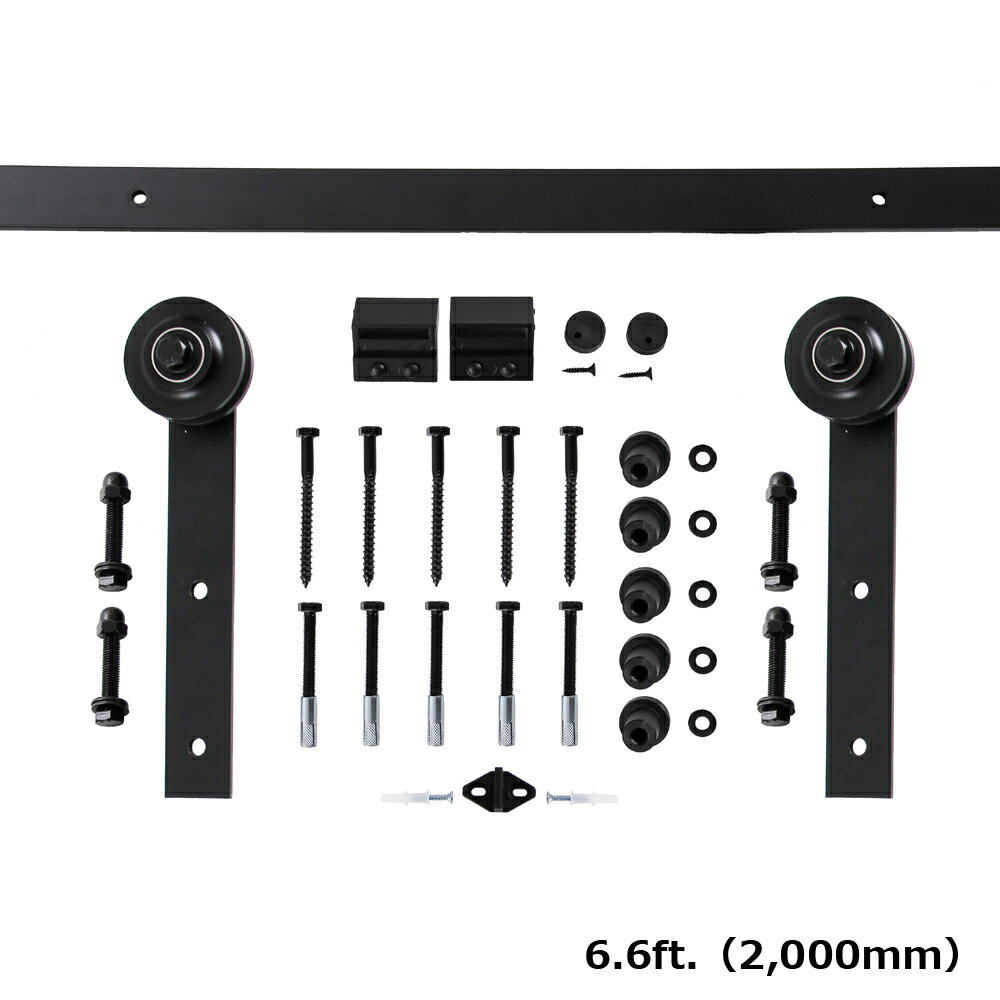 商品名 バーンドアレールキット(オープンプレートデザイン/片引き戸用) サイズ レール長:6.6ft.(2,000mm) 重量 約7.3kg 対応ドア幅 最大1,000mm 材質 カーボンスチール(高品質炭素鋼) カラー ブラック 設置アドバイス 本製品の設置には、30〜40mm厚のドアとドアの上端から天井まで150mmのスペースを要します。