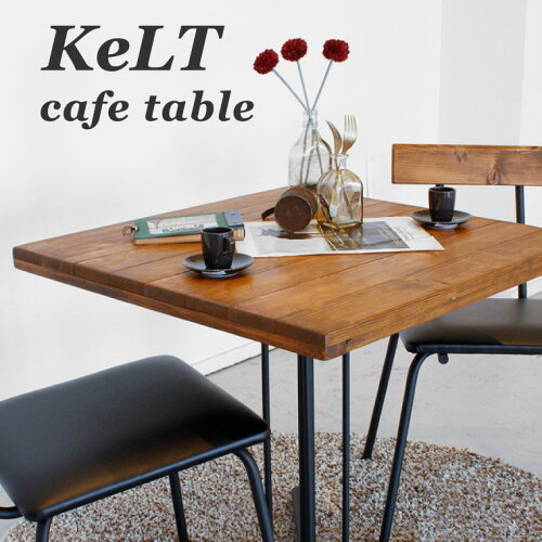 カフェテーブル テーブル ダイニングテーブル 幅72 正方形 北欧 アンティーク ヴィンテージ 木製 無垢 おしゃれ かっこいい 2人掛け 4人掛け 食卓テーブル 1本脚 スチール脚 アイアン シンプル KLカフェテーブルBR