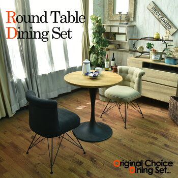 * 3%OFFクーポン 配布中4/28 1:59迄 ラウンドテーブルセット ダイニングテーブルセット 3点セット 2人掛け 2人用 木製 アイアン製 ダイニングチェアー リビングチェアー 幅70 丸テーブル