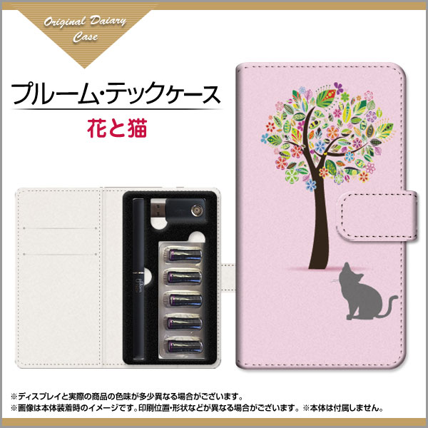 【メール便送料無料】プルームテック ケース Ploom TECH収納用 手帳型ケース プルームテック本体・たばこカプセル・USB充電器の一式収納が可能です!花と猫[ ダイアリー型 ブック型 人気 特価 ]